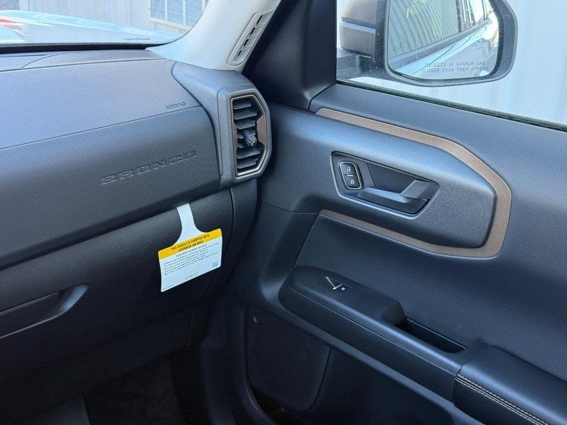 400W Pro Power Onboard, Air Conditioning, All Weather Floor Liners with Bronze Accents, AM/FM radio: SiriusXM with 360L, Apple CarPlay/Android Auto, Automatic temperature control, Auxiliary Switches and Wiring, Black Diamond Off-Road Package, Body-Color Door Handles, Bronze + Black Diamond Off-Road Package, Bronze Badges, Cargo Mat with Bronze Accents, Class II Trailer Tow Package with Trailer Sway Control, Convenience Package, Ebony Black Grille w/Bronze BRONCO Lettering, Electronic Stability Control, Emergency communication system: SYNC 4 911 Assist, Exterior Parking Camera Rear, Flood Light Adjustable Liftgate, Ford Connectivity Package (1-Year Included), Front Black Molded-in-Color (MIC) Bumper, Front Brush Guard, Front Driver/Passenger Seat Back Map Pockets, Heated 8-Way Power Driver's Seat, Internet access capable: 5G Modem - Ford Connectivity Package, LED Fog Lamps, Painted Shadow Black Roof, Premium Trimmed Front Sport Contour Bucket Seats, Premium Wrapped Steering Wheel, Rear Parking Sensors, Rear window defroster, Rear window wiper, Remote keyless entry, Speed control, Speed-Sensitive Wipers, SYNC 4 with Enhanced Voice Recognition, Wheels: 17 Sinister Bronze-Painted Aluminum.