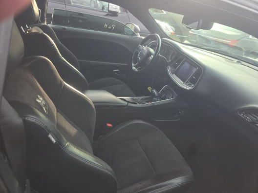 Boasting a bold and aggressive exterior design, the Challenger 392 Hemi Scat Pack Shaker commands attention wherever it goes. The distinctive Shaker hood scoop, black grille, and rear spoiler give this sports car an undeniable presence on the road. Inside, the cabin is crafted with premium materials, including Hectic Mesh interior accents and a leather-wrapped shift knob, creating a refined and driver-focused environment.