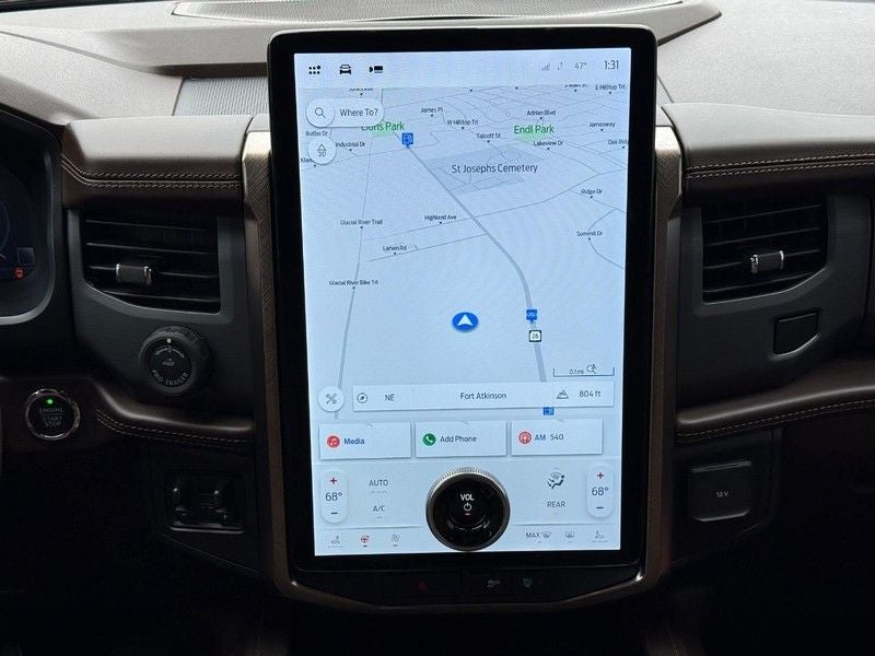 22 Speakers, 26mm Engine Radiator, 360-Degree Camera w/Trailer Reverse Guidance, 3rd row seats: split-bench, 4-Wheel Disc Brakes, ABS brakes, Active Cruise Control, Adjustable pedals, Air Conditioning, AM/FM radio: SiriusXM with 360L, Auto High-beam Headlights, Auto Start-Stop Removal (DISC), Auto-dimming door mirrors, Auto-dimming Rear-View mirror, Automatic temperature control, Brake assist, Bumpers: body-color, Compass, Continuous Controlled Damping (CCD), ControlTrac w/3.73 Axle Ratio, Delay-off headlights, Driver door bin, Driver vanity mirror, Dual front impact airbags, Dual front side impact airbags, Electronic Stability Control, Emergency communication system: SYNC 4 911 Assist, Engine Block Heater, Equipment Group 400A Standard Package, Exterior Parking Camera Rear, Four wheel independent suspension, Front anti-roll bar, Front Bucket Seats, Front Center Armrest, Front dual zone A/C, Front fog lights, Front reading lights, Fully automatic headlights, Garage door transmitter, Genuine wood console insert, Genuine wood dashboard insert, Genuine wood door panel insert, Hands-Free Foot-Activated Liftgate Removal (DISC), Heated door mirrors, Heated front seats, Heated rear seats, Heated steering wheel, Heated/Vent Prem Del Rio Lthr Fr Captain's Chairs, Heavy-Duty Trailer Tow Package, Illuminated entry, Integrated Trailer Brake Controller, Leather steering wheel, Low tire pressure warning, Memory seat, Navigation system: Connected Navigation, Occupant sensing airbag, Outside temperature display, Overhead airbag, Overhead console, Panic alarm, Passenger door bin, Passenger vanity mirror, Pedal memory, Power door mirrors, Power driver seat, Power Liftgate, Power moonroof, Power passenger seat, Power steering, Power windows, Pro Trailer Backup Assist, Radio data system, Radio: B&O Unleashed Sound System by Bang & Olufsen, Rain sensing wipers, Rear air conditioning, Rear anti-roll bar, Rear reading lights, Rear window defroster, Rear window wiper, Reclining 3rd row seat, Remote keyless entry, Second Row Power Windows Removal, Security system, SiriusXM w/360L, Speed control, Speed-sensing steering, Speed-Sensitive Wipers, Split folding rear seat, Spoiler, Steering wheel memory, Steering wheel mounted audio controls, SYNC 4 w/Enhanced Voice Recognition, Tachometer, Telescoping steering wheel, Tilt steering wheel, Traction control, Trip computer, Turn signal indicator mirrors, Variably intermittent wipers, Ventilated front seats, Voltmeter, Wheels: 22 6-Spoke Polished Aluminum.